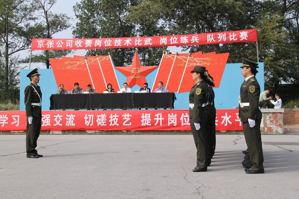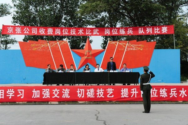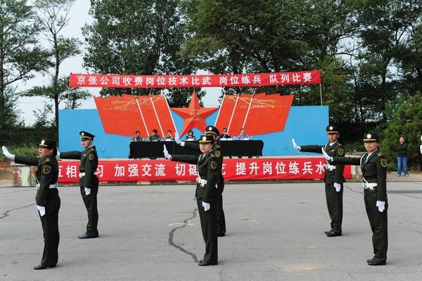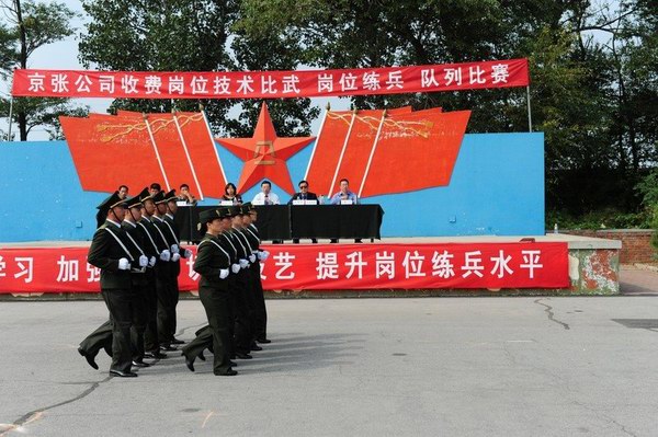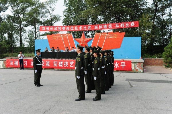 此次收費崗位比武練兵活動,嚴格按照省高管局“收費崗位技能競賽活動實施方案”的要求進行,公司和各收費站先后召開了專題動員會,傳達和貫徹崗位技能競賽的有關精神,廣泛發(fā)動,層層動員,周密部署。針對京張高速收費人員配置相對較少、車流量大、保暢工作繁重的特點,各收費站從8月中旬開始,全部改四班三運轉為三班三運轉。按照“全員參與,全面提高”的原則,全體收費人員放棄休假,在保證正常工作的同時,全身心投入到隊列演練、肢體禮儀、理論知識等崗位技能競賽活動中。東花園收費站專門將參加隊列比賽的人員送到駐軍某部進行全封閉訓練,宣東下花園站、沙城站專門聘請了部隊教官進行嚴格訓練,雞鳴驛站由站長助理親自施教。全體參練人員頂烈日、冒酷暑,揮汗如雨,連中秋節(jié)都沒有休息,沒有絲毫的懈怠,全線營造出濃厚的練兵氛圍,體現(xiàn)了參練人員刻苦頑強的精神風貌。為切實提高比武練兵的質量,公司運營部從9月初開始,陸續(xù)組織各收費站之間進行對抗比賽和觀摩活動,相互學習,加強交流,切磋技藝,達到了全面提高的目的。此次隊列比賽正是在全員練兵的基礎上舉行的,旨在檢驗比武練兵的效果,迎接全局系統(tǒng)的崗位技能比賽。