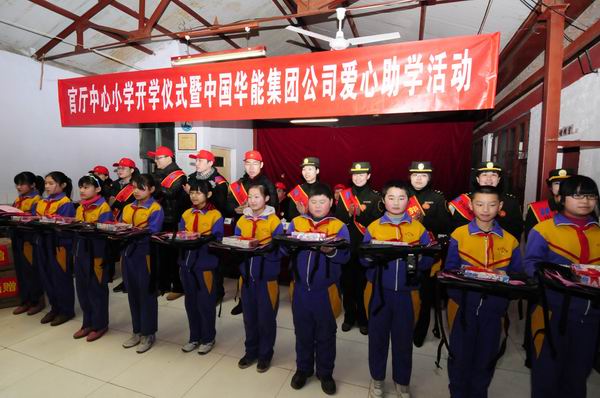 捐贈(zèng)儀式上,愛(ài)心涌動(dòng),掌聲不斷。公司向?qū)W校捐贈(zèng)了“華能愛(ài)心書(shū)屋”,與會(huì)領(lǐng)導(dǎo)和公司青年志愿者代表分別為貧困學(xué)子贈(zèng)送了書(shū)包、書(shū)本等學(xué)習(xí)用品,學(xué)生代表熱情地為與會(huì)領(lǐng)導(dǎo)戴上了鮮艷的紅領(lǐng)巾。青年志愿者愛(ài)心團(tuán)隊(duì)莊嚴(yán)承諾要“大力弘揚(yáng)和傳承雷鋒精神,用忠誠(chéng)服務(wù)企業(yè)、用愛(ài)心傳承文明、用真情奉獻(xiàn)社會(huì)、用行動(dòng)實(shí)現(xiàn)價(jià)值”。受資助學(xué)生代表用稚嫩的聲音表達(dá)了感謝之情,立誓要好好學(xué)習(xí),以優(yōu)異的成績(jī)回報(bào)大家的愛(ài)心。