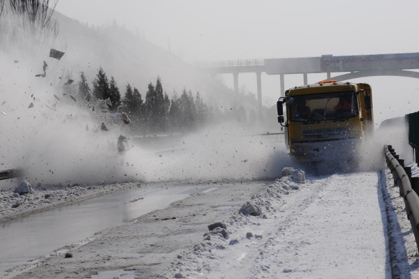 在此次除雪過程中,共出動指揮車、巡查車、吹雪車、噴灑融雪劑車、干灑融雪劑車、裝載機和推雪車共計176臺次,出動除雪人員360人次。共撒布融雪劑150噸,噴灑融雪液650噸。由于準備充分,行動迅速,機械化程度高,達到了高管局要求的24小時雙向四車道通行,48小時路面無積雪的要求,公司所轄京藏高速路段未出現(xiàn)大面積堵車。