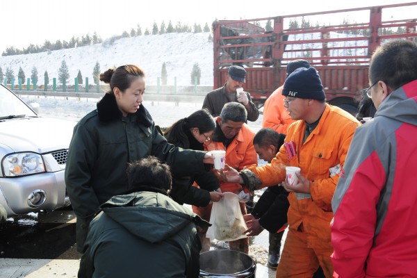 在這次除雪過程中,京張公司全面啟動應急預案,各部門齊心協(xié)力,值班人員24小時在崗,監(jiān)控中心及時發(fā)布路況。在全力做好除雪工作的同時,公司、各收費站和服務區(qū)還派出服務車為路上滯留人員送去開水、方便面、火腿腸和榨菜等應急食品,并給部分因低溫天氣而拋錨的故障車輛提供維修服務。同時在路上辛苦工作的養(yǎng)護工人也喝到了雞蛋湯,吃上了熱氣騰騰的包子。