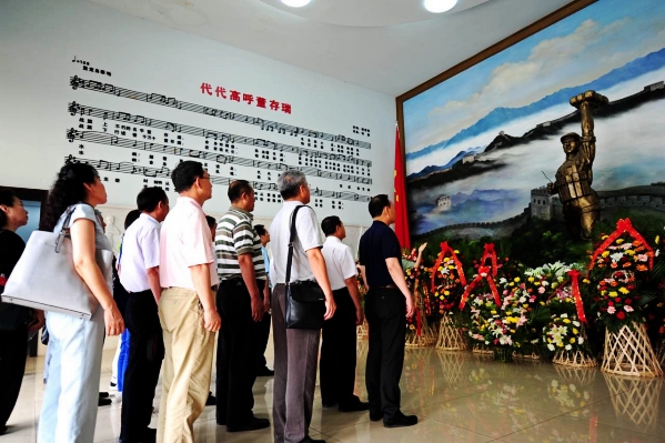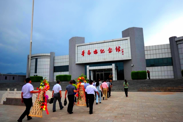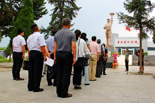 29日下午2點,與會代表乘車來到位于懷來縣南山堡村的董存瑞烈士紀念館接受紅色傳統(tǒng)教育。在英雄舍身炸碉堡的塑像前,代表們向革命英雄獻上花籃,并行三鞠躬禮,表達對烈士的無限崇敬。在紀念館展廳,大家跟隨著講解員的介紹,觀看了珍貴的圖片和實物,對董存瑞的成長歷程和英雄業(yè)績有了生動的了解,為革命烈士為了新中國的誕生付出鮮血和生命的壯舉而深深震撼。