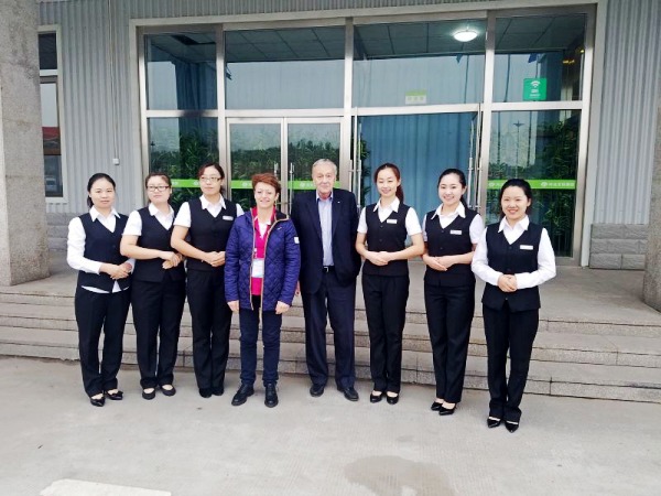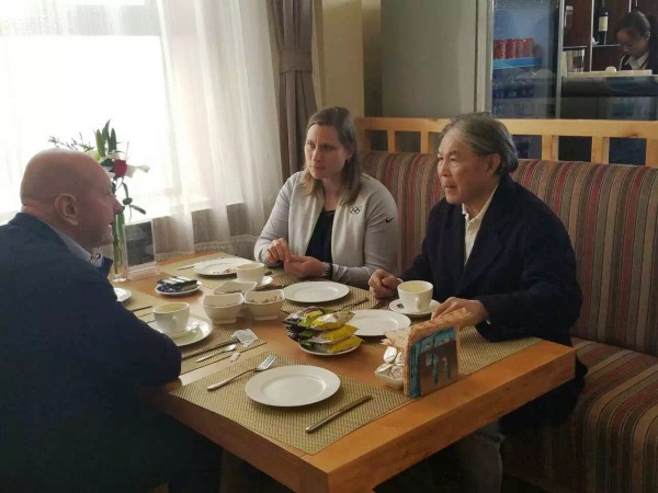 國(guó)際滑雪聯(lián)合會(huì)主席卡斯珀與接待人員合影