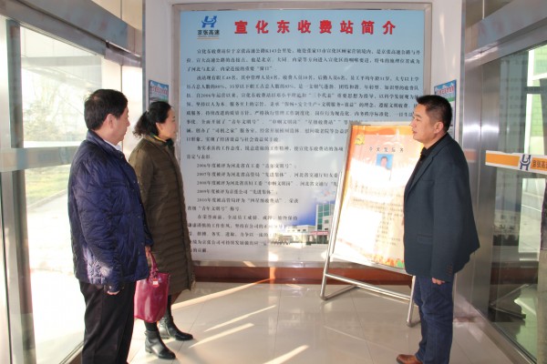 調(diào)研組還參觀了宣化東收費站黨員活動室,對京張公司及基層黨支部的黨建工作給予了充分的肯定,指出京張公司通過深入思考、精心籌劃、積極踐行讓基層黨建工作系統(tǒng)了起來;通過準(zhǔn)確定位、精心提煉、認(rèn)真打磨,使“兩學(xué)一做”與溫暖黨建、自主管理等工作以及職工的需求統(tǒng)籌了起來;基層黨支部通過學(xué)中干、干中學(xué),讓黨組織的戰(zhàn)斗力、黨員的先進(jìn)性和職工的積極性凸顯了出來。