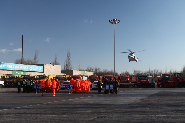 15日,懷來縣大風降溫,天氣寒冷,風力達到七級以上。京張高速官廳服務區(qū)作為演練活動河北懷來現(xiàn)場,卻熱鬧非常,受到媒體和公眾的關注。從上午8點起,為給演練活動提供方便,服務區(qū)暫時關閉。依照演練預案要求,京張公司出動的20名養(yǎng)護工和五臺除雪設備在現(xiàn)場列隊,與來自首都高速養(yǎng)護集團的同行、武警交通部隊的戰(zhàn)士和車輛裝備、高速交警同場參演。下午2點20分,通過衛(wèi)星視頻傳輸,北京市副市長張建東宣布演練活動開始。此次綜合演練背景之一設定為在2019年北京冬奧會測試賽舉辦期間,華北地區(qū)出現(xiàn)大范圍強降雪、局地大暴雪,造成冬奧測試賽裁判員和部分司乘人員被困于河北懷來地帶,通過上級單位遠程會商,河北省應急辦、省交通廳在組織做好除雪救援工作的同時,向北京方面請求支援。在演練現(xiàn)場,集結到位的除雪隊伍分別向現(xiàn)場指揮部報告,并按照命令有條不紊地開向暴雪路段,為救援工作除雪開路。隨后,伴隨著巨大的轟鳴聲,一架北京警航的直升機降落在京張高速官廳服務區(qū)廣場,受困的冬奧測試賽裁判員的飛行保障人員的協(xié)助下登機,飛機騰空而起向冬奧會分會場崇禮方向飛去。其余受困人員被北京999和懷來當?shù)氐募本溶嚱幼。通過三地多家單位的共同努力,現(xiàn)場道路交通得以恢復,懷來現(xiàn)場的應急處置工作順利結束。此次演練中,懷來現(xiàn)場融入了冬奧會交通保障內(nèi)涵,對做好未來冬奧會交通保障工作具有極強的現(xiàn)實意義。(何文儒)
