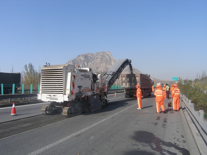 上午10點20分,在張家口方向K121+670~K121+780路段,施工單位按照既定的養(yǎng)護工程交通管制方案,對試驗段的行車道和緊急停車帶部分先做好了隔離封閉,各崗位施工人員和銑刨機、壓路機、自卸汽車、灑水車等配套的機械設備全部到場就位。公司路面專項工程部與本項工程的監(jiān)理、設計單位同時到達現(xiàn)場進行監(jiān)督檢查。