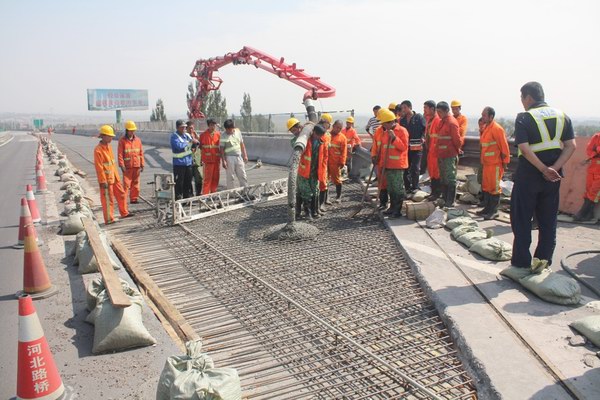 在項目實施過程中采取全過程監(jiān)測,通過監(jiān)測數(shù)據(jù)指導(dǎo)施工。在項目施工中嚴格質(zhì)量、進度和安全管理。監(jiān)理工程師全過程旁站,發(fā)現(xiàn)問題要求施工單位及時整改。公司項目工程師每天對施工過程進行督導(dǎo)和檢查。為確保施工安全,加大了交通管制協(xié)調(diào)力度。橋面施工中由高速交警、路政做好高速公路的交通管制,橋下由地方交警、路政配合做好交通疏導(dǎo),車輛分流處設(shè)值守點,并委托地方路政協(xié)調(diào)解決橋下有關(guān)商戶的影響事宜,有效確保了施工進度和安全。(工程養(yǎng)護部 李強)