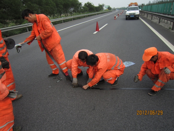 今年以來(lái),工程部在全線灌縫工作中采用了新工藝、新方法配合施工,在原有對(duì)裂縫進(jìn)行開槽灌縫的基礎(chǔ)上增加了對(duì)細(xì)小裂縫不開槽直接采用裂縫貼處理的方法,此方法施工簡(jiǎn)便,加快了施工進(jìn)度,新材料提升預(yù)防性養(yǎng)護(hù)水平(工程養(yǎng)護(hù)部)